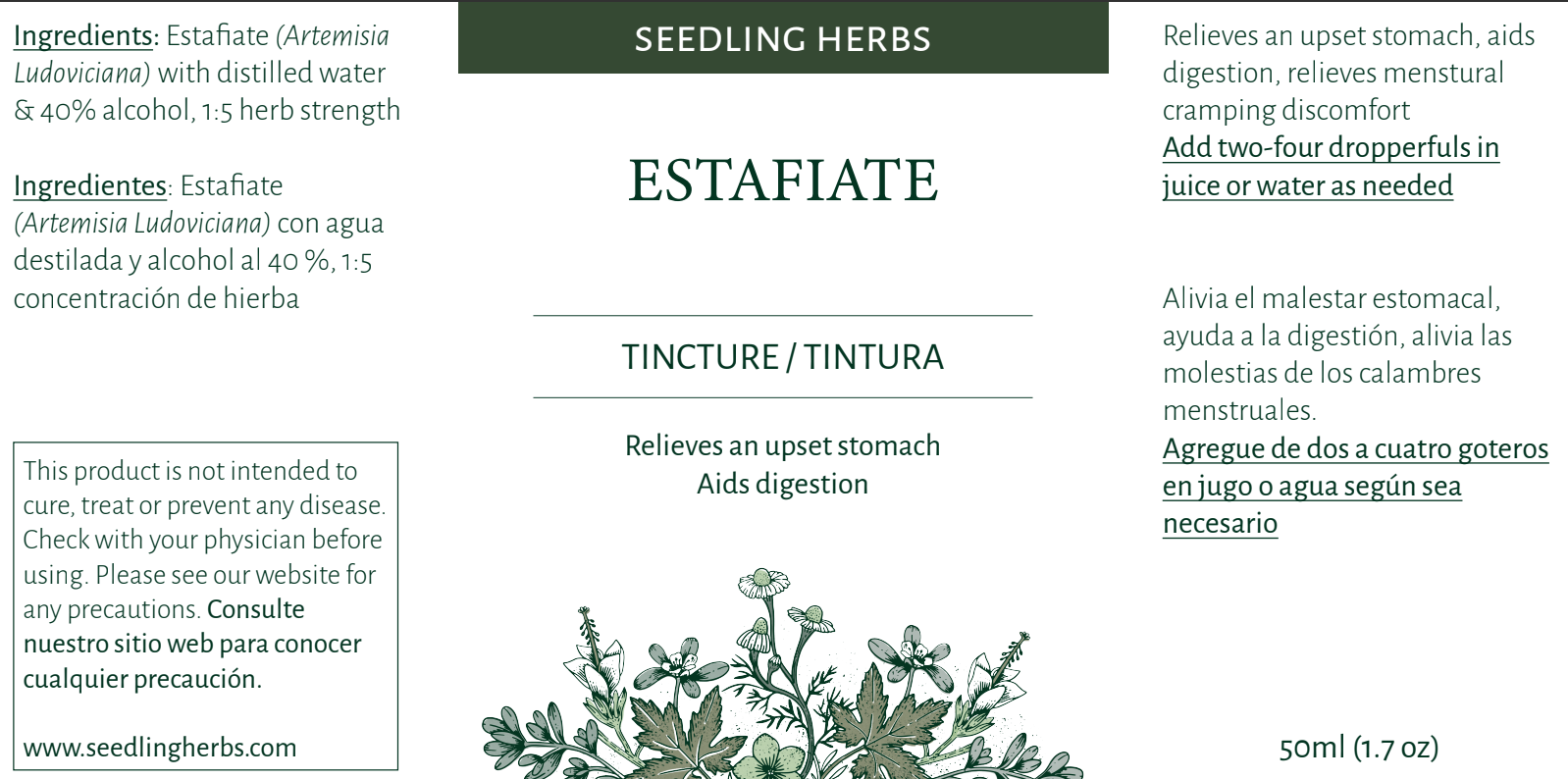 Estafiate (Artemisia Ludoviciana) con agua destilada y 50% de alcohol, concentración de hierba 1:4