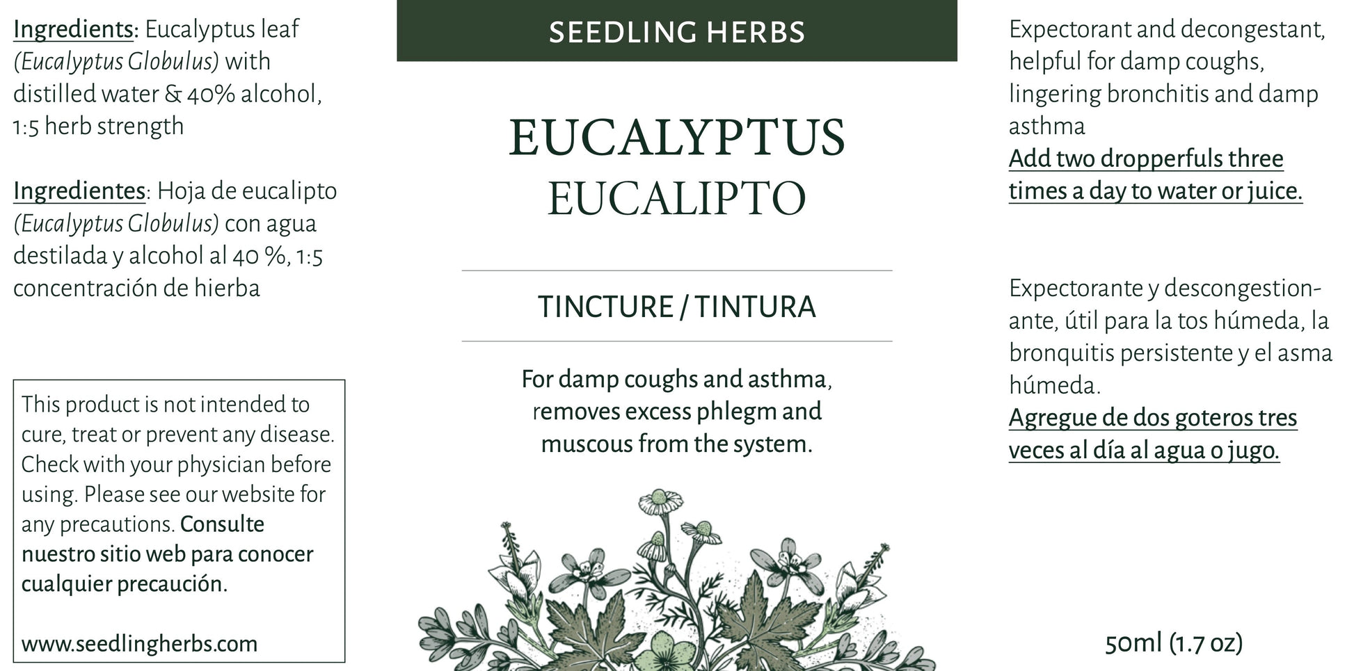 Hoja de eucalipto (Eucalyptus globulus) con agua destilada y alcohol al 50%, proporción 1:4 de hierbas
