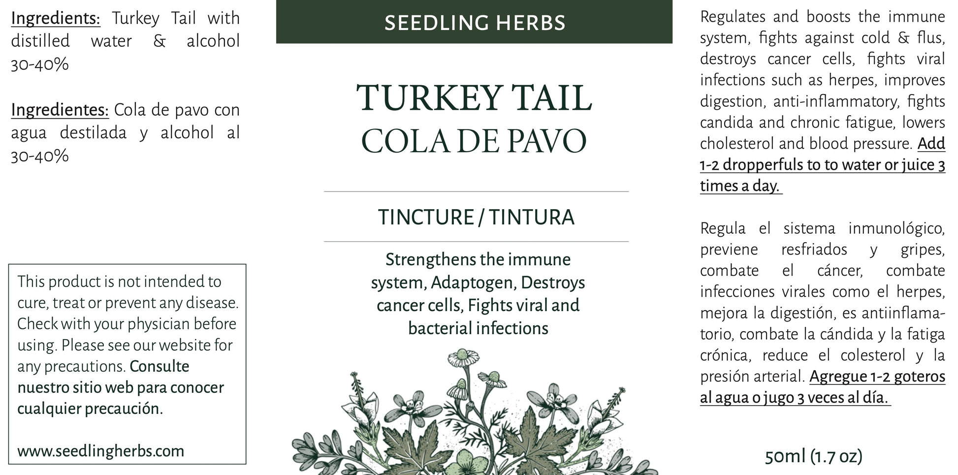 Cola de pavo (Trametes versicolor) con agua destilada y 50% de alcohol, proporción de hierbas 1:4