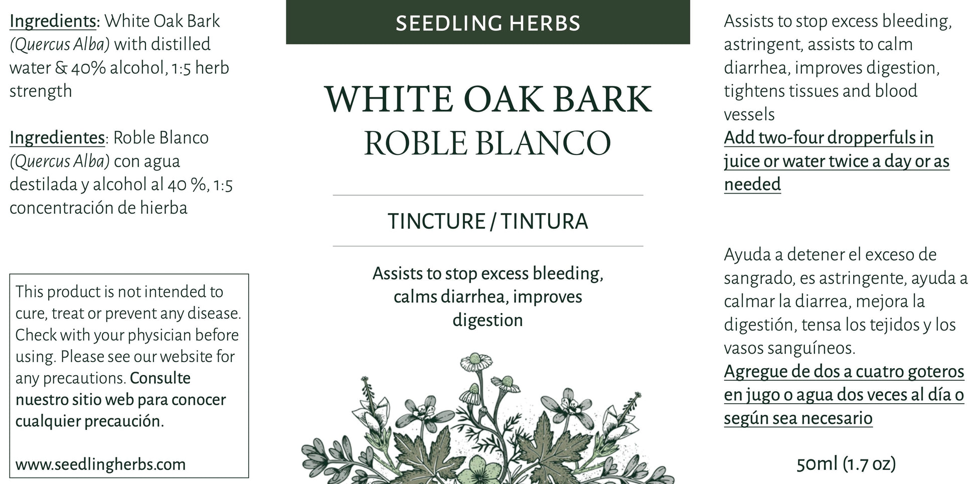 Corteza de roble blanco (Quercus Alba) con agua destilada y 50% de alcohol, concentración de hierba 1:4